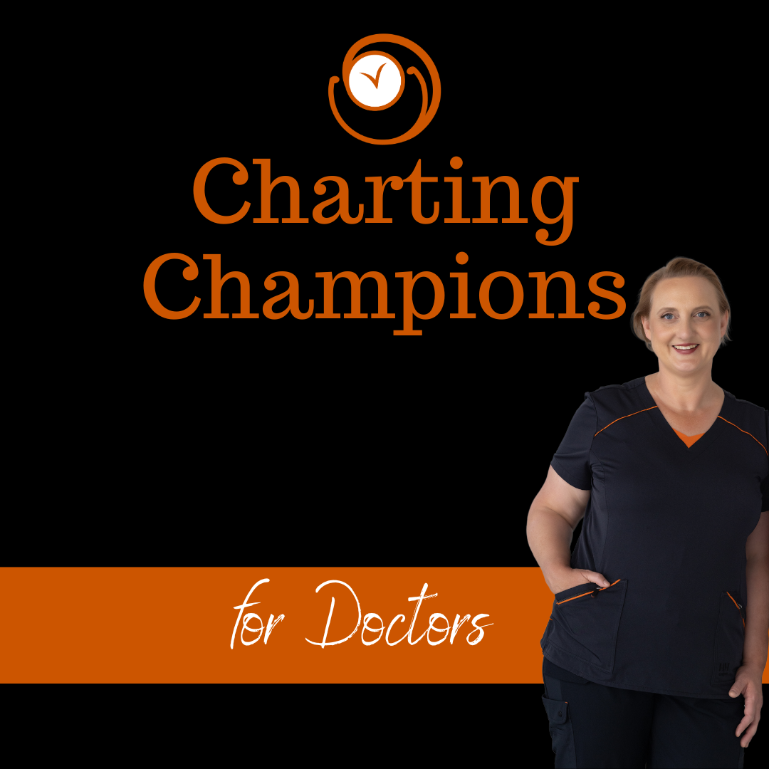 Charting Champions is designed for doctors who want structured support around charting, efficiency, and sustainability in clinical practice. The program focuses on building better documentation habits and workflows that reduce charting time and mental load over the long term.